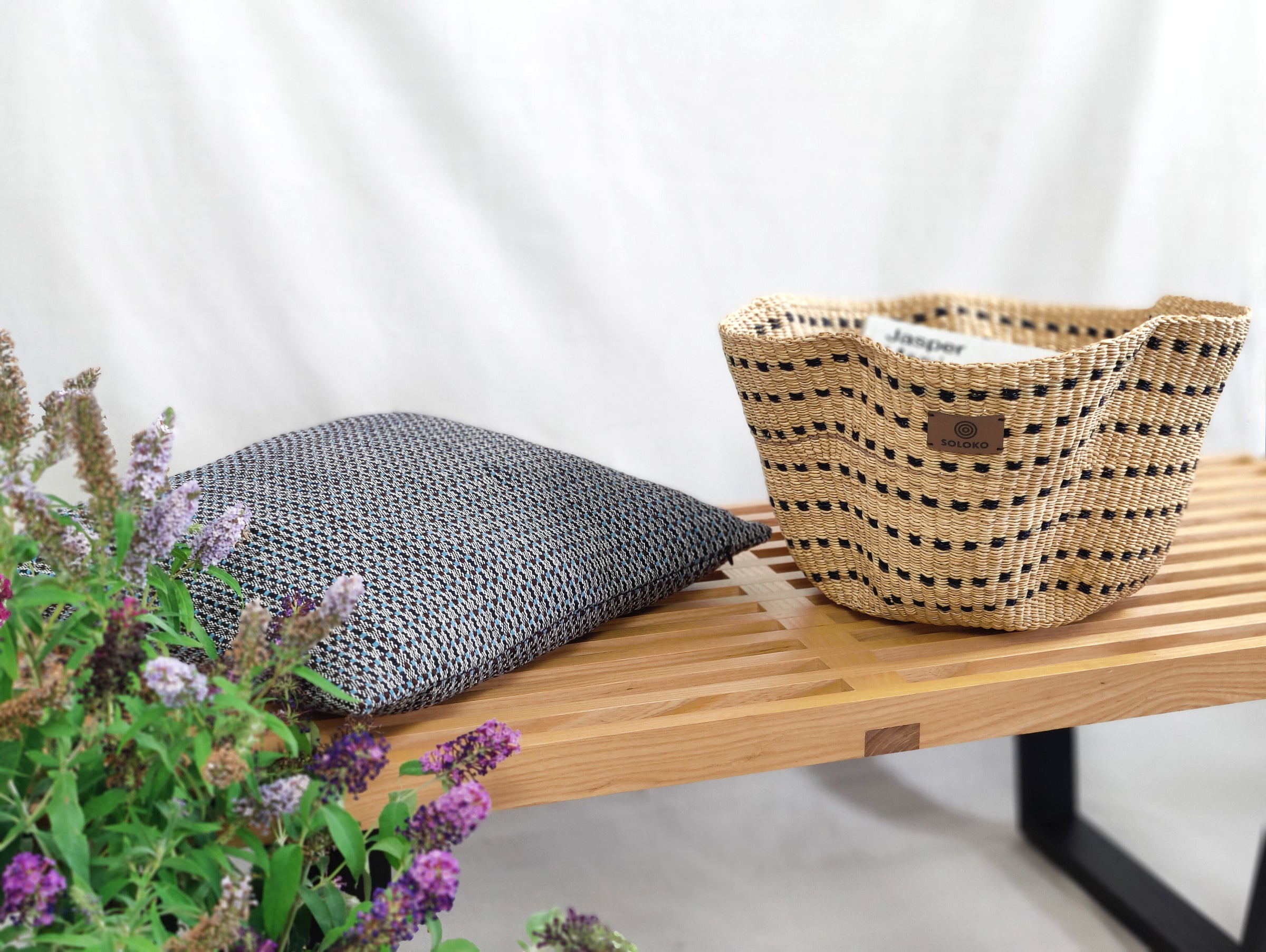 We use Veta Vera or better known as Elephant grass for the production of our basket products. Veta Vera is a very robust and fibrous plant that gives the products a long durability. Making products from elephant grass is a complex process and requires a lot of experience and skill. Depending on the product, production can be very time consuming. It starts with the grass harvest. After harvesting, the grass has to dry for several weeks. The next step is to split the stalks, which is usually done with teeth. After splitting, the stalks are twisted together. Now the grass is prepared for dyeing, which later gives the product its beautiful and vibrant colours. And finally, the strawsare ready for weaving.